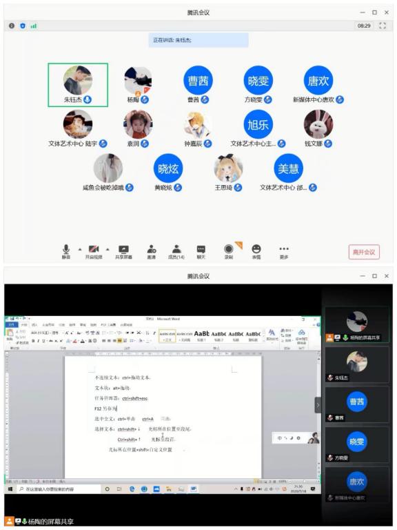 7月18日至7月21日,学院团委员工会利用腾讯会议在线上开展office办公软件暑期培训活动,院团委员工会全体成员参加了培训。