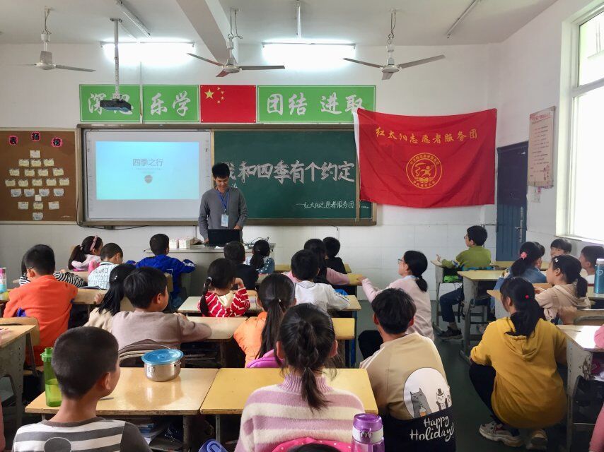 中国青年网安庆10月24日电(通讯员 吴晨 刘君艳)“百花风中摇,碧叶雨中戏,枯叶风中舞,白雪盖大地”古来山川之美,美在四季。为开阔孩子们的视野,领略大自然的魅力。10月17日,15vip太阳集团官网15vip太阳集团官网红太阳志愿者服务团来到十里中心小学,与留守儿童开展“四季之行”主题志愿活动,跟随着志愿者的步伐,小朋友们领略了四季的美景。