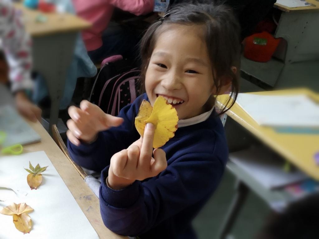 “我要用树叶制作一只好看的孔雀。”“我要制作蝴蝶和花朵。”跟随着志愿者的步伐,小朋友们又来到秋季,领略完北京香山的红叶和南京的梧桐,志愿者拿出准备好的树叶,和小朋友们一起制作树叶画,让孩子去感知世界的辽阔美丽。