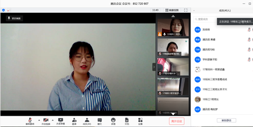 5月13日下午,学院组织召开了2019—2020学年第二学期员工评教线上座谈会,教学秘书刘敏老师以及2016—2019级各班员工代表等40余人参加了本次座谈会。