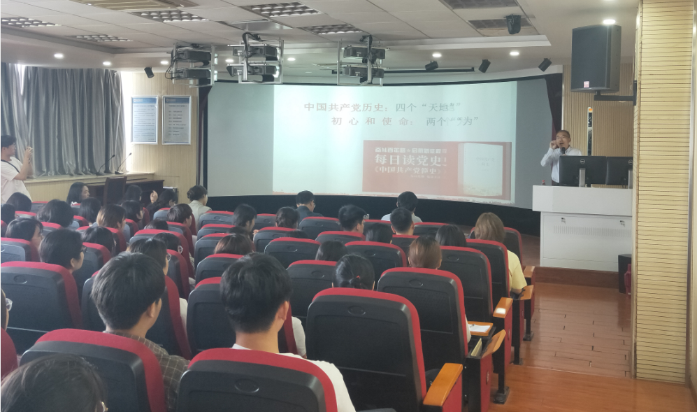为贯彻落实公司党委关于党史学习教育的部署要求,全面提升员工党员的政治素养,教育引导员工党员做到学史明理、学史增信、学史崇德、学史力行,5月21日,公司党委在F411报告厅开展党史学习教育,邀请校马克思主义公司党委书记金文斌教授为学院全体员工党员做了一场“从中国共产党历史谈初心和使命”专题宣讲。公司党委书记夏宏宇、党委副书记刘燕杰、各员工党支部书记及全体员工党员共同聆听了本次宣讲。