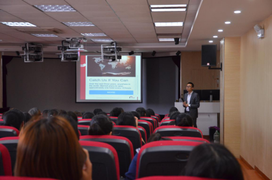 邵总监以自身职业发展为例,分享了自己从前台接待、前台主管、大堂经理、夜班经理、前厅部副经理、前厅部经理到房务总监的10年历程。然后,对酒店的组织构架、主要职责和功能特点等方面进行了详细介绍,同学们不仅对酒店各部门有了更深入的了解,而且对自己今后实习和就业选择什么岗位,有了更加清晰的答案。在互动环节,同学们提出了很多问题。大家最为关心的问题有:酒店基层员工和管理层的薪资待遇;员工遇到客人的刁难,酒店方会如何维护员工利益;女员工职业发展会不会受到生育问题影响等。鉴于旅管专业女生比例较多的情况,邵总监对“酒店行业女性成功几率是否比男性低”这一话题与同学们进行了交流。随着时代的进步,“女性领导力”的话题和研究也越来越多,更多的女性在酒店和其他行业取得了成功,这对在座的员工是一种激励。