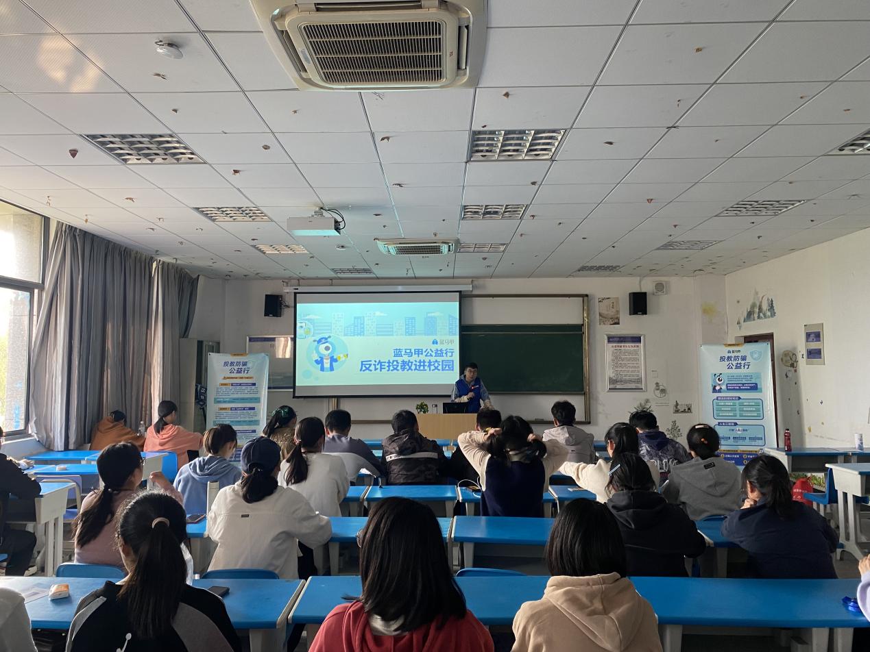 为了增强同学们的预防诈骗意识,保护个人财产安全,10月27日下午,学院特邀请蓝马甲公益行反诈投教中心林老师于F207为同学们开展了预防范电信网络诈骗专题安全讲座,70多名同学参加。
