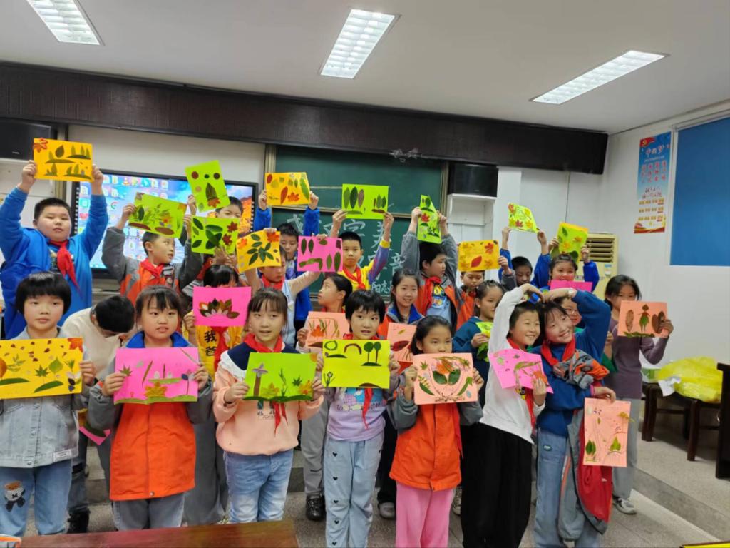 “一二一,一二一…”四一班的同学们迈着整齐的步伐跟随班主任走进多媒体教室,主讲人肖杰通过精美的ppt向小朋友展示同种汉字的不同模样,从而形象地展现出汉字从繁到简的演变。了解了汉字的发展史后,志愿者给孩子们用视频讲解了树叶贴画制作的技巧,开启了新的一节实践课。通过有趣的树叶贴画游戏展现了孩子们的创造力与丰富的想象力。愿今日之少年皆能以吾辈之力量担汉字之传承重任!