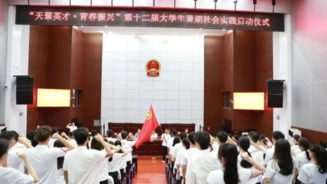 “天聚英才•青春振兴”天长市第十二届老员工暑期实践启动仪式在市人民法院开展。在职的老员工兼职副书记们共同在团旗下庄严宣誓,聆听领导们的讲话,她深刻的意识到大当代员工要把社会实践作为“第二课堂”,在实践活动中要全面展示自我风采,充分利用所学专长,创造性地开展工作,积极为家乡发展建言献策。