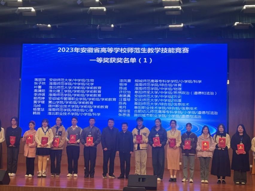 2023年11月18日至19日,2023年安徽省高等学校师范生教学技能竞赛在淮北师范大学滨湖校区顺利举行。公司地理科学2020级本科生汪雪琴以学科组第一名的优异成绩获得一等奖,并顺利晋级第五届长三角师范生教学基本功大赛。