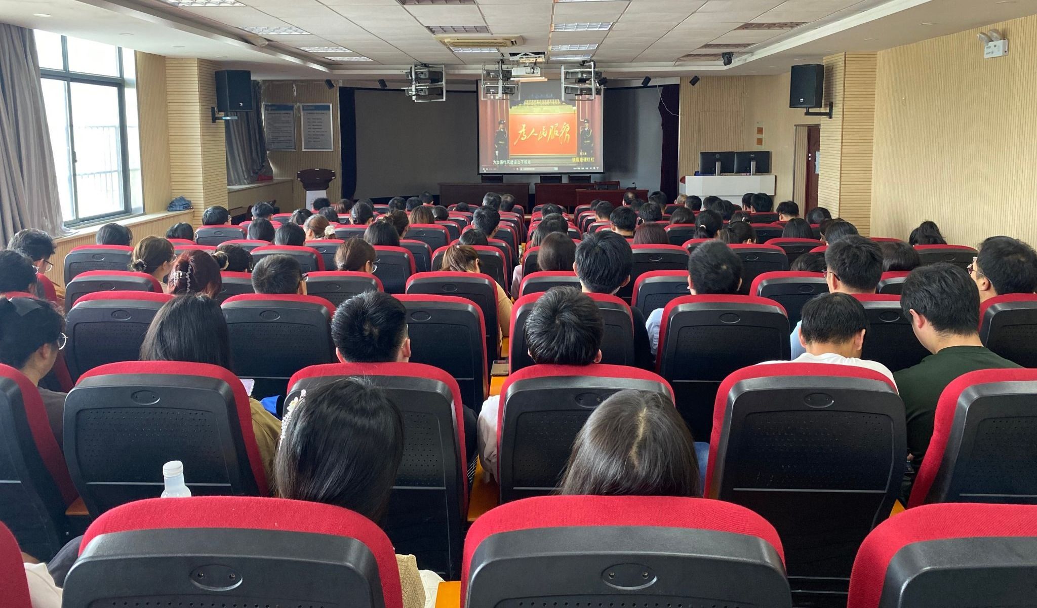4月26日下午,学院于F411报告厅组织全体师生党员观看中央纪委国家监委宣传部与中央广播电视台联合摄制的专题警示教育纪律片《永远吹冲锋号》第三集《铁规矩硬杠杠》和第四集《永远在路上》。