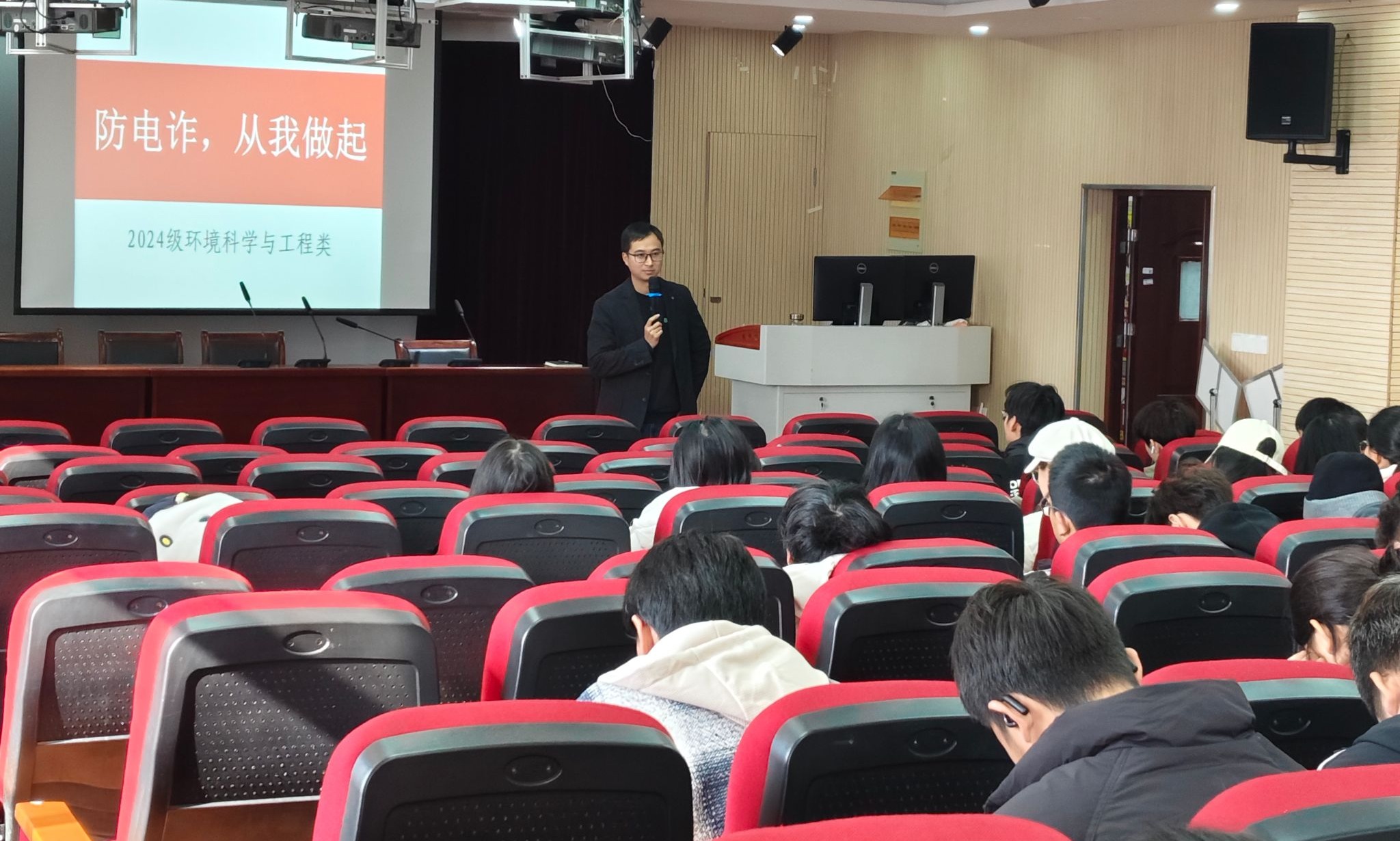 12月6日,2024级环境科学与工程类专业在F411开展“防电诈,从我做起”主题班会。