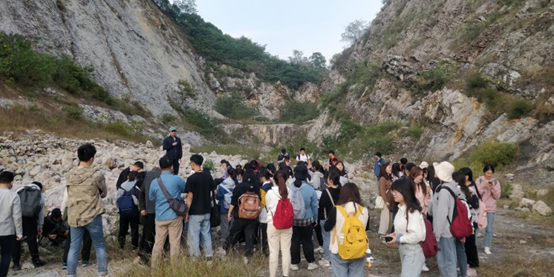 在老师的指导下,员工们在麒麟山东南坡采石场进行团队分工与合作、利用导线实测地质剖面。“实测地质剖面不仅需要提前选取剖面线、考虑很多因素,还要运用地质罗盘进行测量等等。不仅如此,还需要很多同学齐心协力、共同配合。我们不仅体会到理论学习与实践操作结合的必要性,而且也感受到了团队协作的重要性。”地理科学专业2019级2班生活委员何玉珍感慨道。