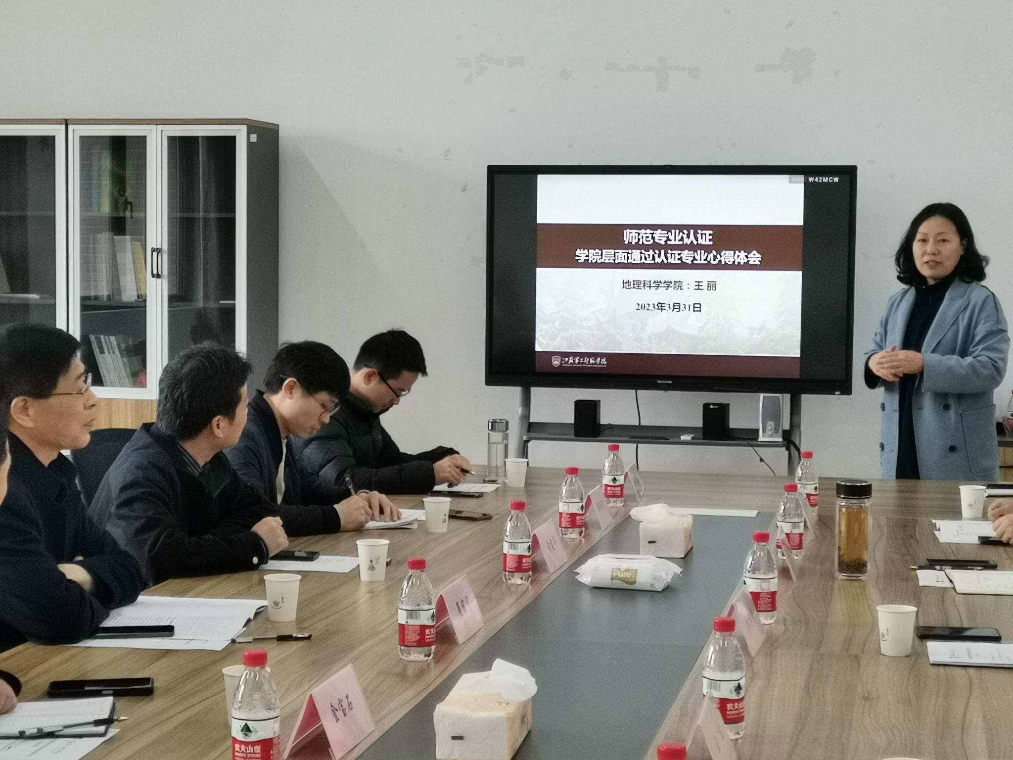 4月1日上午,江苏第二师范学院地理科学公司党总支书记徐孝彬、经理仇方道,副经理王丽等对公司的到来表示热烈欢迎。会上,王丽副经理就地理科学学院在党建引领、人才培养、团队队伍建设、学科与专业建设、实验室建设、师范专业认证等方面进行了分享,与公司教师深入交流了地理科学专业认证过程中的经验做法。