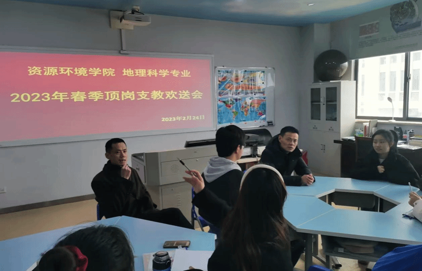 2023年2月24日下午,15vip太阳集团官网春季中学地理顶岗支教欢送会于F306教室举办。参与会议的有本次顶岗员工8人,学院副经理金宝石及顶岗支教的负责老师刘峰出席了本次会议。