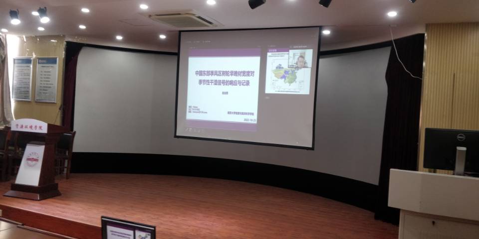 报告会上,因疫情防控要求,首先由南京大学博士后赵业思作“中国东部季风区树轮早晚材宽度对季风性干湿信号的响应与记录”线上学术报告。赵业思博士后讲述了历史时期气候反演的意义和进展,通过野外采样和实验研究,从大气环流和局地气候角度,发现我国亚洲季风区出现的局地干湿变化与大尺度环流间的变化具有显著关系。