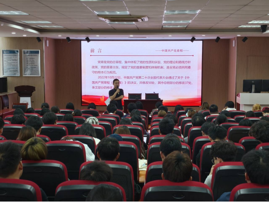 开班仪式结束后,訾纪辉老师围绕《中国共产党章程》,详细解读了党章的主要内容,引导学员要积极学习党章,自觉遵守党章,持续提升自身政治素养,做信仰坚定、忠诚可靠、勇于担当的时代青年。