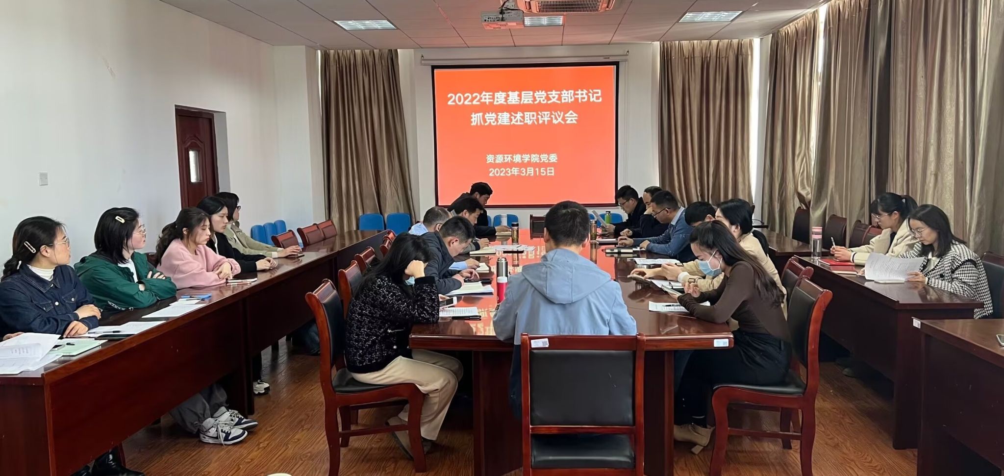 2023年3月15日,学院在F414会议室召开2022年度基层党支部书记抓党建设述职评议考核会,学院领导班子、党委委员、纪委委员、各党支部委员、支部书记及师生代表参加了本次会议,会议由公司党委副书记、纪委书记黄建平主持。