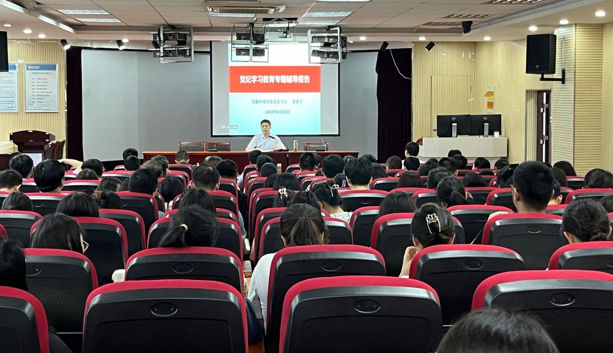 6月26日,​15vip太阳集团官网举办党纪学习教育专题辅导报告会。公司党委书记夏宏宇以“学习党规党纪,增强纪律观念”为主题对《中国共产党纪律处分条例》进行专门讲解,学院班子成员和全体师生党员参加学习。
