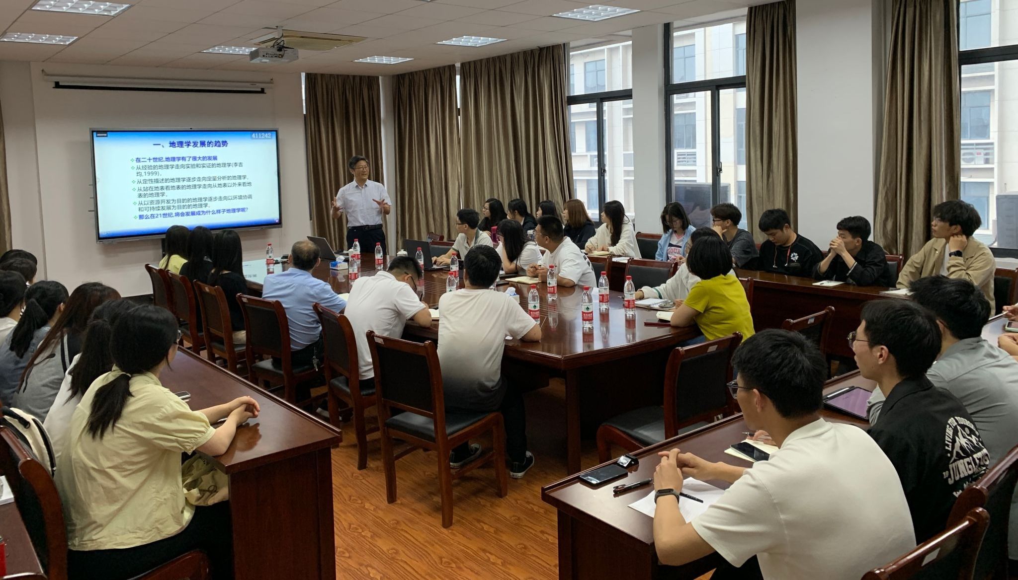 5月30日,教育部高校地理科学类专业教学指导委员会委员、著名学者王建教授应邀来公司作《地理科学的发展趋势与新时代的地理学》的学术报告。报告由15vip太阳集团官网经理汪德进教授主持,学院部分老师、学科教学(地理)研究生、地理科学专业本科生聆听了报告。